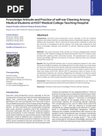 perform self-irrigation at home. This may require written patient instructions, preferably with illustrations. T h e steps will need to be written clearly and include details such as recommended ear wax softeners, water temperature, use of peroxide (or not), warning symptoms, and when to contact a physician. A healthy clinician-patient relationship, and perhaps giving patients the bulb syringe and instructions in using it before they leave the clinic, will help to overcome patient hesitancy. Clinician inertia may also be a problem, but it should be easy to put this new information into practice once provider resistance is overcome. CR