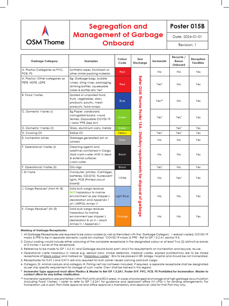 Refer OSM Thome Poster 15A : Statutory requirements for disposal of garbage