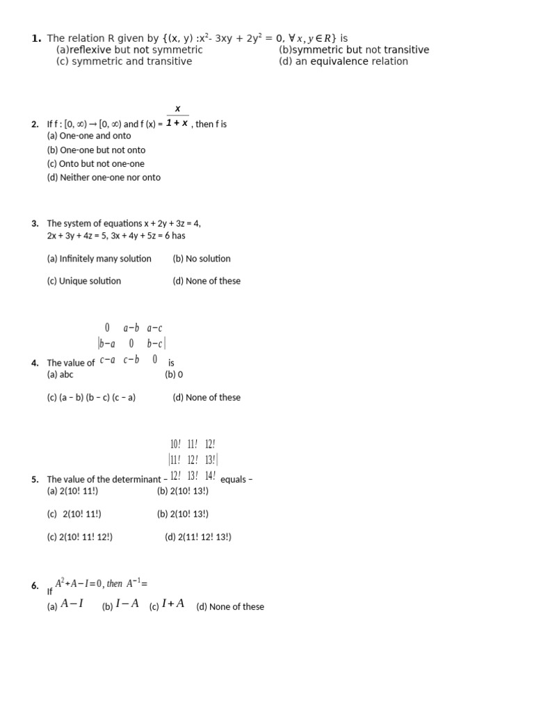 25. The relation R is defined in the set {1, 2, 3, 4, 5, 6} as R = {(a, b) :b= a + 1}, then
