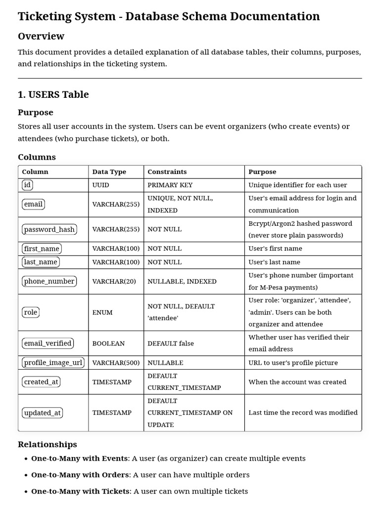 1. Phase 1: Users, Events, Ticket_Types tables