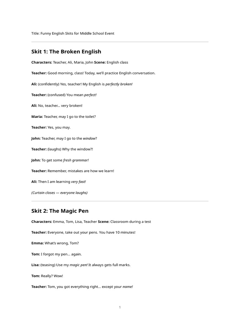 Teacher: Good morning, class! Today, we’ll practice English conversation.