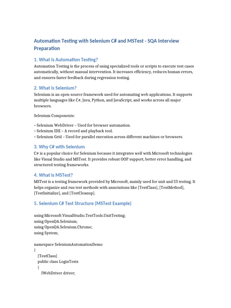Automation Testing with Selenium C# and MSTest - SQA Interview