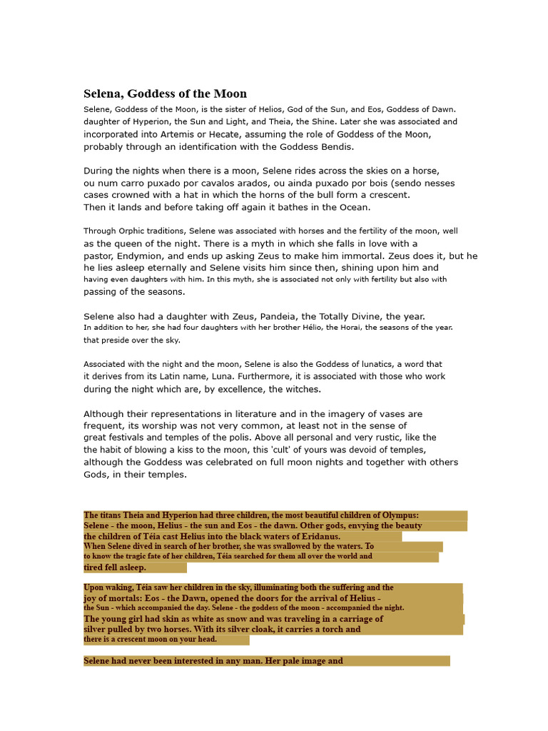 the powers of the goddess Selene are hidden under the appearance of beliefs and religions more
