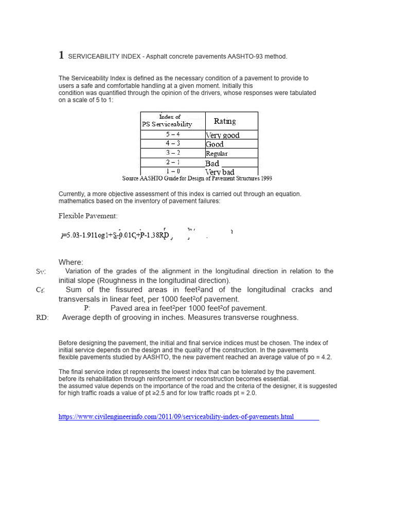 pavement. The assessment of this parameter defines the concept of Serviceability Index