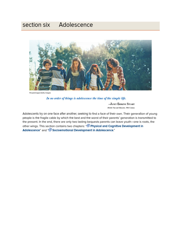 Adolescence” and “ Socioemotional Development in Adolescence.”