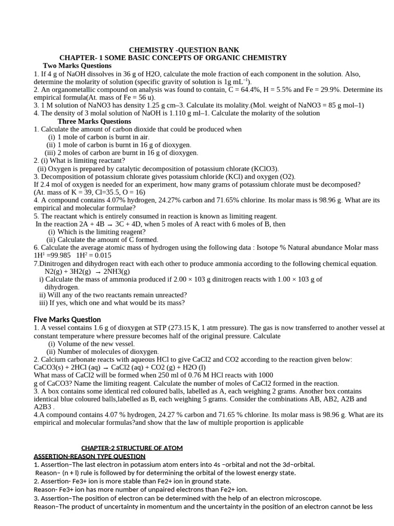 CHEMISTRY -QUESTION BANK