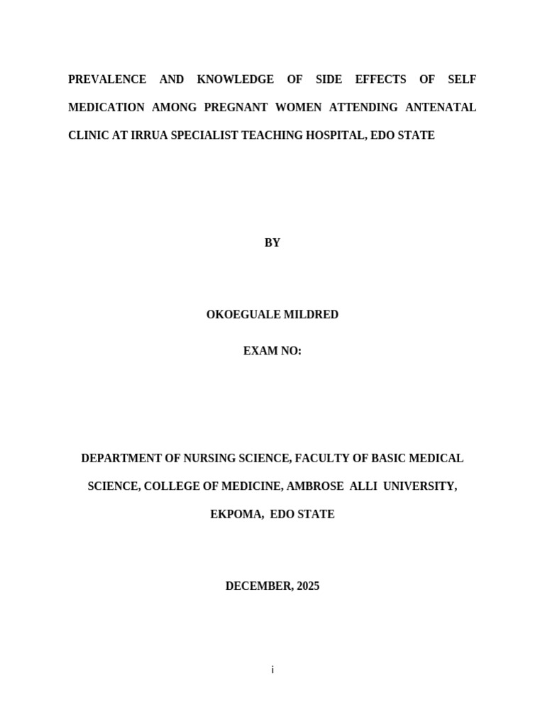 I am a student of the Department of Nursing in Ambrose Alli University, Ekpoma,