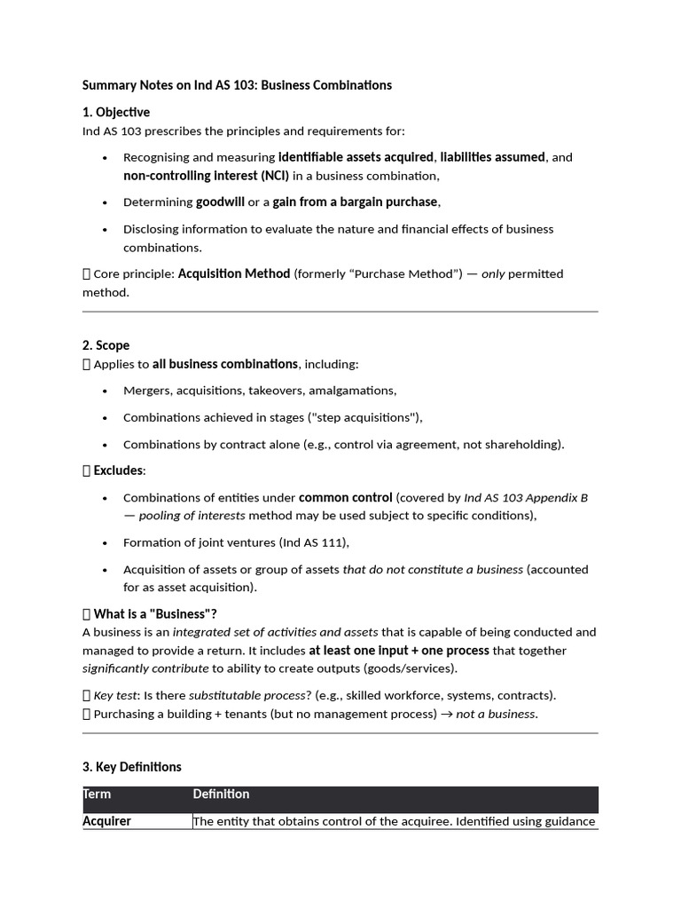 Summary Notes on Ind AS 103: Business Combinations