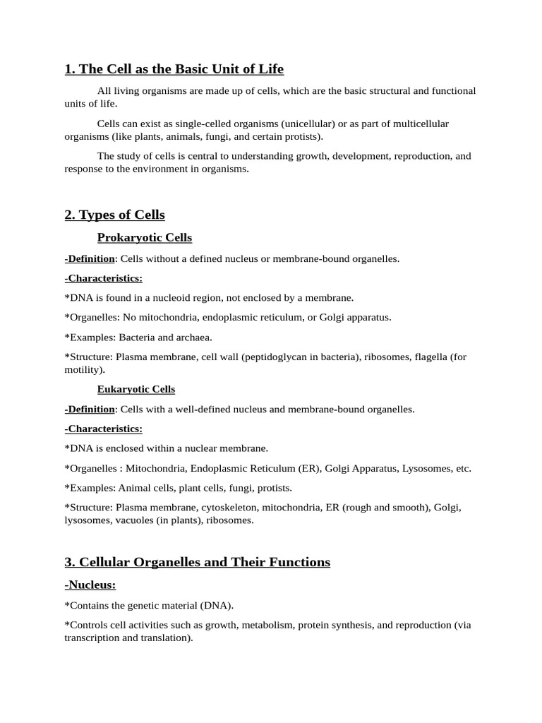The Cell as the Basic Unit of Life