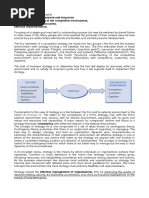 The twenty fifth National Business Conference sponsored by the Harvard Business School Association in 1955 made one of the earliest attempts to discuss the concept of strategy. In 1965, Ansoff published a book Corporate Strategy which was based on his experiences at the Lock heed Aircraft corporation. Chandlers historical study of the development of some of the American enterprises proposed strategy as one of the most important variables in the study of organizations. From the literature on strategic management, it is evident that strategic planning refers to the management processes in organizations through which the future impact of change is determined and current decisions are made to reach a designed future. 2.2 CONCEPT AND NATURE OF CORPORATE STRATEGY The word strategy is derived from the Greek word strategtia which was used first around 400 B.C. This connotes the art and science of directing military forces. In 1819 Introduction to Corporate Strategy business parlance, there is no definite meaning assigned to strategy. A few definitions stated below may clarify the concept of corporate strategy: KENNETH ANDREWS(1955), The pattern of objectives, purpose, goals and the major policies and plans for achieving these goals stated in such a way so as to define what business the company is in or is to be and the kind of company it is or is to be This definition refers to the business definition. IGOR ANSOFF(1965) explained the concept of strategy as the common thread among the organizations, activities and product markets, that defines the essential nature of business that the organization was or planned to be in future.