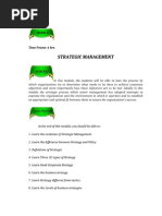 responsibility of top management. At the corporate level, the board of directors and chief executive officers are involved in strategy making. Corporate planners and consultants may also be involved. Mostly, corporate level strategies are futuristic, innovative and pervasive in nature. Decision like spreading the range of business interests, acquisitions, diversification, structural redesigning, mergers, takeovers, liquidations come under corporate level strategies. Business Level Strategy:- Strategic business unit (SBU) managers are involved at this level in taking strategic decisions. These strategies relate to a unit within an organization. At business level, the objectives are formulated for SBUs and resources are allocated among functional areas. These strategies operate under the defined scope of corporate level strategy. Business level strategy is more specific and action oriented. It relates mainly with how aspect. The corporate level strategy is related to what aspect of corporate strategy. Operating Level Strategy:- This level of strategy is at the operating end of the organization. It is also known as functional level strategy. These decisions relate to training, investment in plant, advertising, sales promotion, total quality management, market segmentation etc. This decision is almost tactical. They deal with a relatively restricted plan providing objectives for specific function, allocation of resources among different operations within the functional area and coordination between them. The following table shows distinctive characteristics of the three levels of strategy: Table 1: Statategic decisions at different levels of corporate strategy Dimensions Levels Corporate Business Operating Functional 1. Time Horizon Long Medium Short 2. Type of Decision Philosphical Mixed Operational