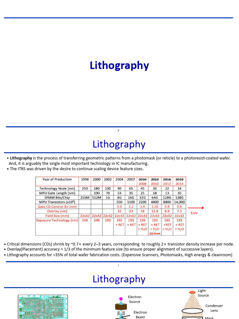 • Lithography accounts for >35% of total wafer fabrication costs. (Expensive Scanners, Photomasks, High energy & cleanroom)