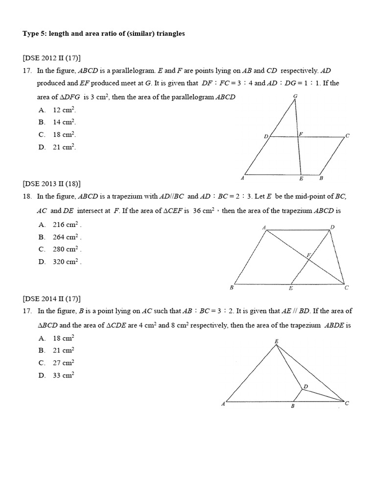 18. In the figure, ABCD is a trapezium with AD//BC and AD:BC = 2:3. Let E be the mid-point of BC,