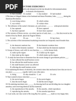 8) If you dont know anything about mechanics, do not take your car apart. A. repair your car C. drive your car 9) Sophia didnt hesitate, and married him in 1821. A. plan A. alter A. slow A. prolong A. attract B. take a long time to decide C. want to B. obstruct B. difficult B. traverse B. delight C. improve C. simple C. repel C. console D. confide D. spoil D. happy D. precede D. inspire 10) Trees that block the view of oncoming traffic should be cut down. 11) People who live in the country enjoy a rustic life style. 12) Because light travels faster than sound, lightning appears to go before thunder. 13) Springtime displays of fruit blossoms in the Shenandoah Valley draw thousands of tourists each year. 14) After many years of unsuccessful endeavouring to form his own orchestra. Glenn Miller finally achieved world fame in1939 as a big band leader. A. requesting A. requests B. trying B. attempts C. offering C. offers C. drop in on their teacher D. send for their teacher C. which are about C. they want it C. heat flows D. about which D. that they want D. hot flow D. deciding D. trips 15) Ralph Bunch won a Nobel Prize in 1950 for his peacemaking efforts as a United Nations diplomat. 16) They tried to play tricks on their teacher but he was too clever for them. A. make their teacher the victim of a trick B. be at strife with their teacher A. which is about A. they want what A. heat flow A. always have polluting C. have always polluted A. whose paintings A. he studied A. the circulation is B. who has painted B. to study B. is the circulation B. of which about B. what they want B. flows hot B. take your car to a garage D. separate the different parts of your car.