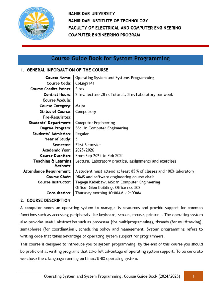 Operating System and System Programming, Course Guide Book (2024/2025) 1