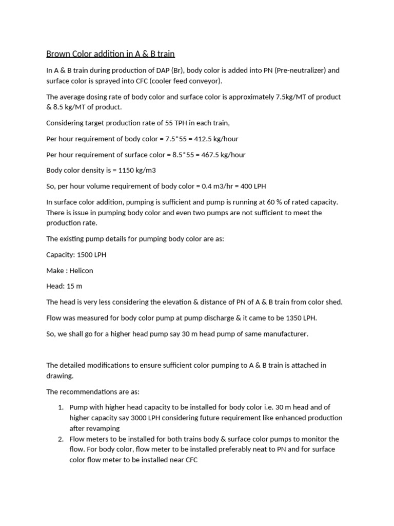 The detailed modifications to ensure sufficient color pumping to A & B train is attached in