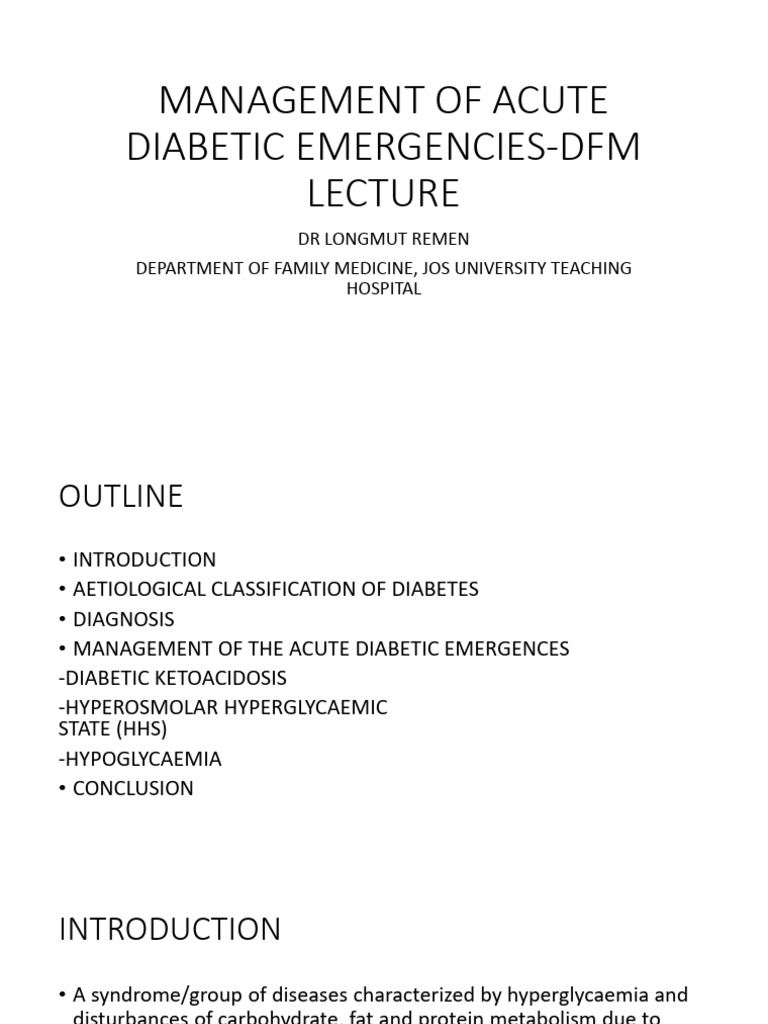 • MANAGEMENT OF THE ACUTE DIABETIC EMERGENCES