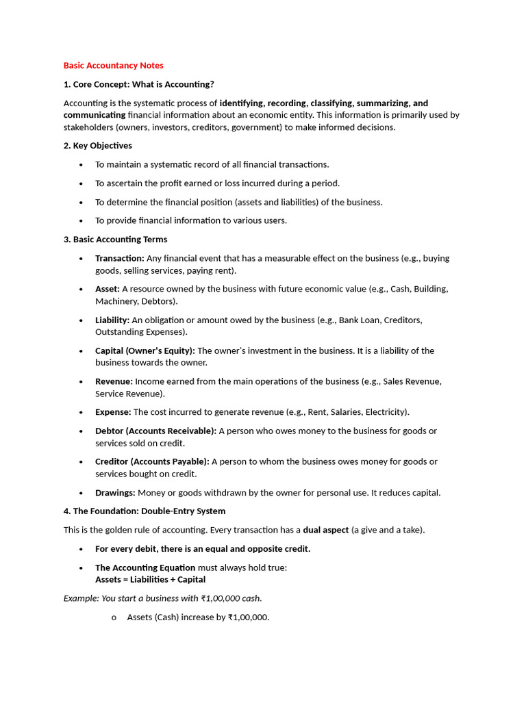 These notes cover the absolute essentials to build a strong foundation in accountancy. Practice with
