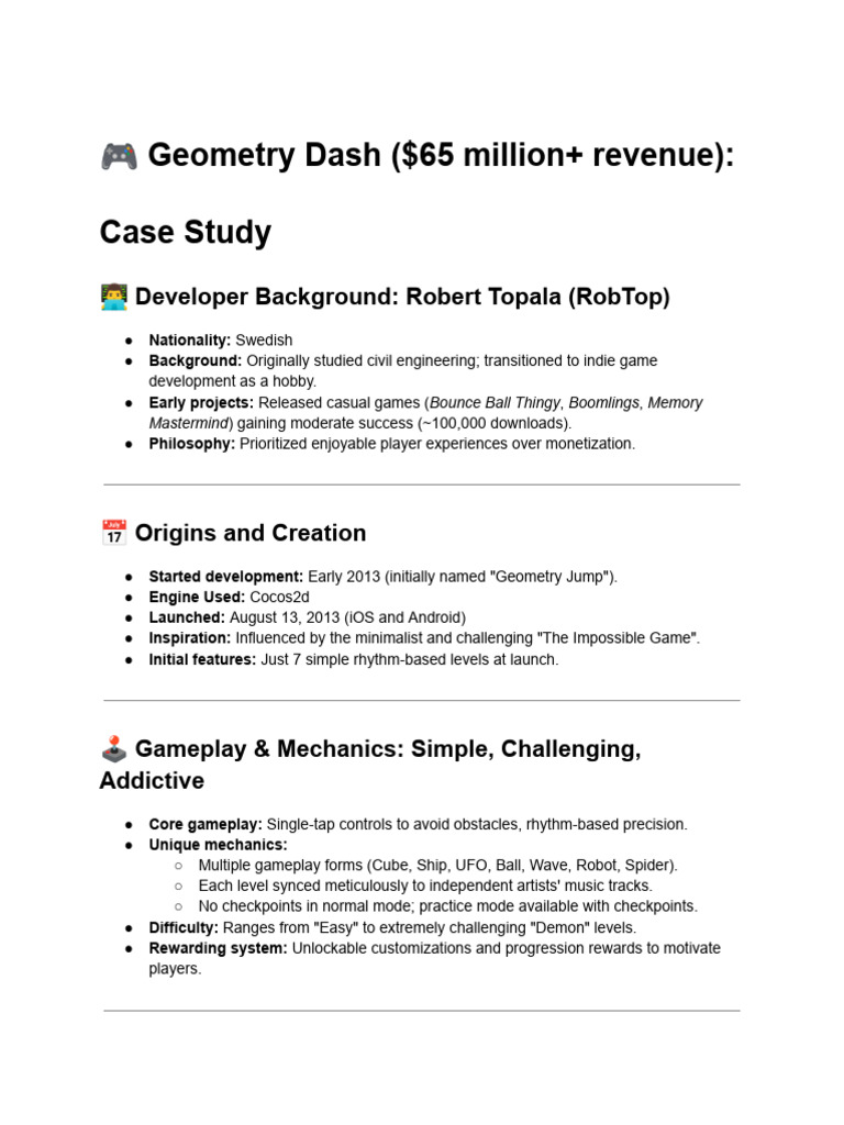 ● Early projects: Released casual games (Bounce Ball Thingy, Boomlings, Memory
