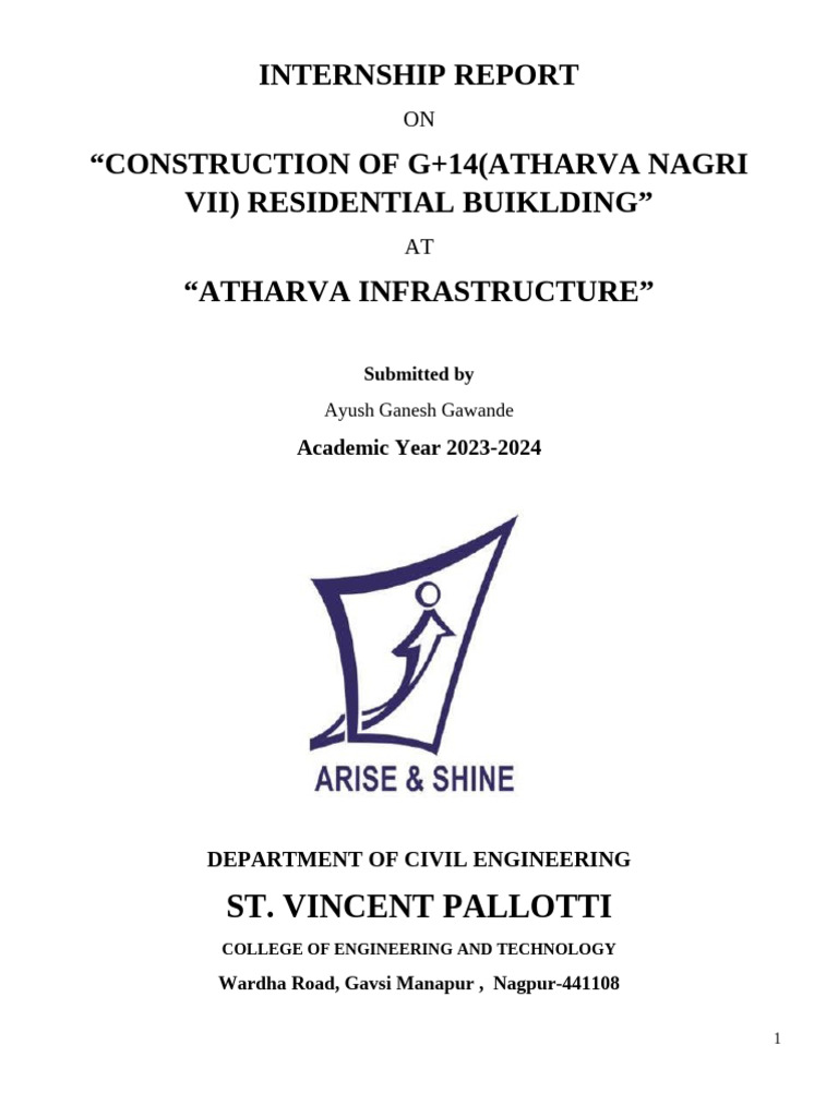 Internship Report "Construction of G+14 (Atharva Nagri Vii) Residential Buiklding" "Atharva Infrastructure"