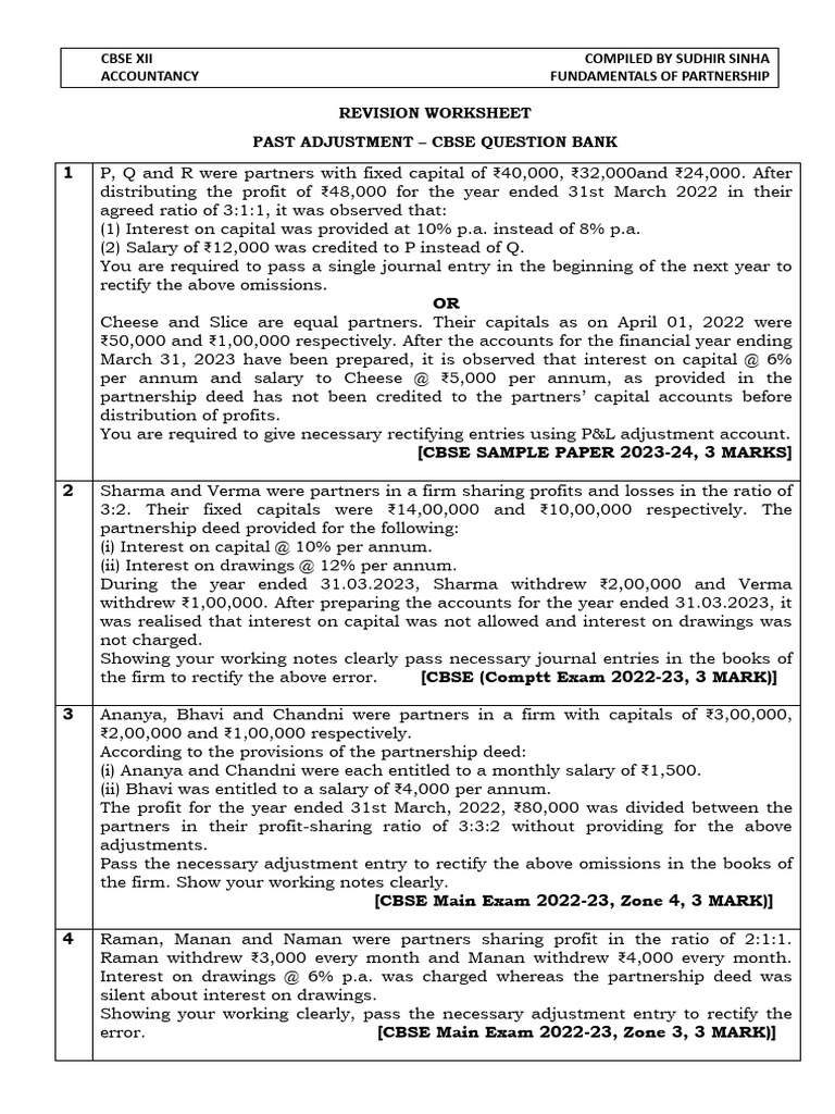 PAST ADJUSTMENT – CBSE QUESTION BANK