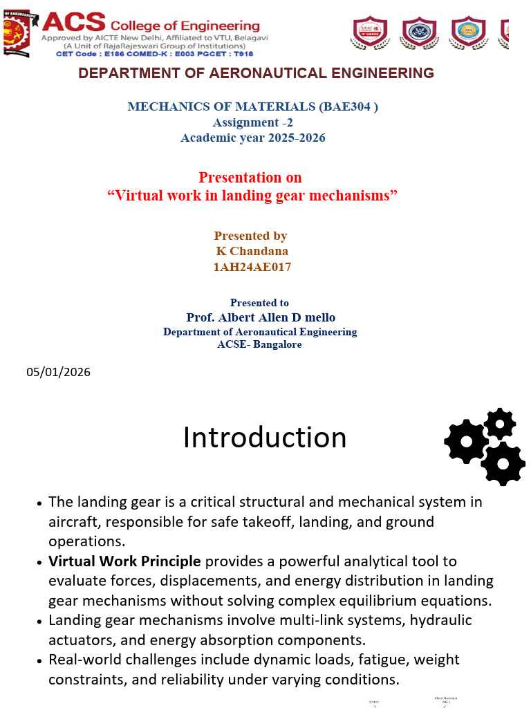 1. Applying Virtual Work to a Simple Landing Gear Linkage
