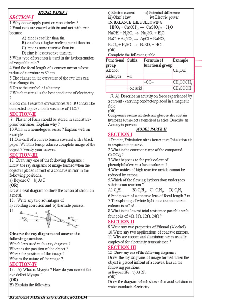 MODEL PAPER-I i) Electric current ii) Potential difference