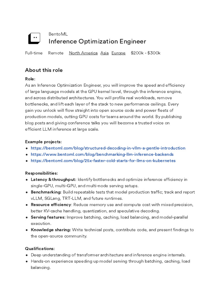 Experienced with inference engines such as vLLM, SGLang, or TRT-LLM (upstream