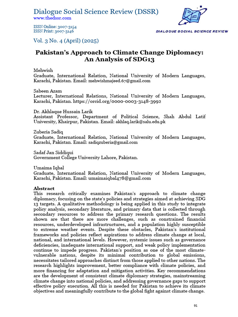 Keywords: SDG13, Climate Diplomacy, Pakistan, Policies, Mitigation