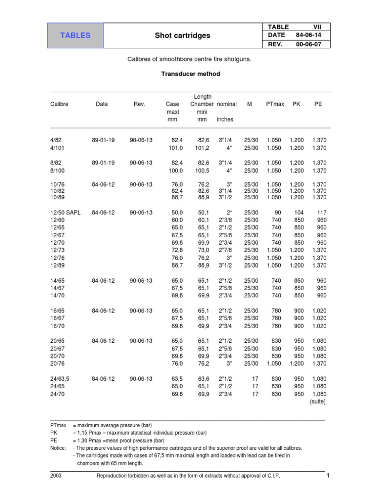 - The pressure values of high performance cartridges and of the superior proof are valid for all calibres.