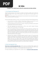 Documents need to be submitted for applying for M visa