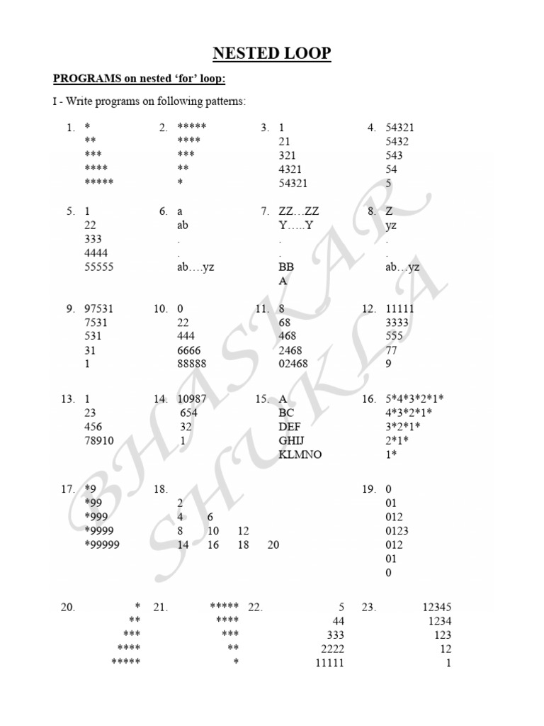 26. Write a program in Java to print either of the following patterns for n lines, depending on