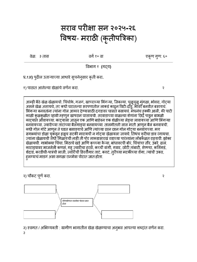 वेळ: ३ तास वर्ग १० वा एकूण गुण: ६०