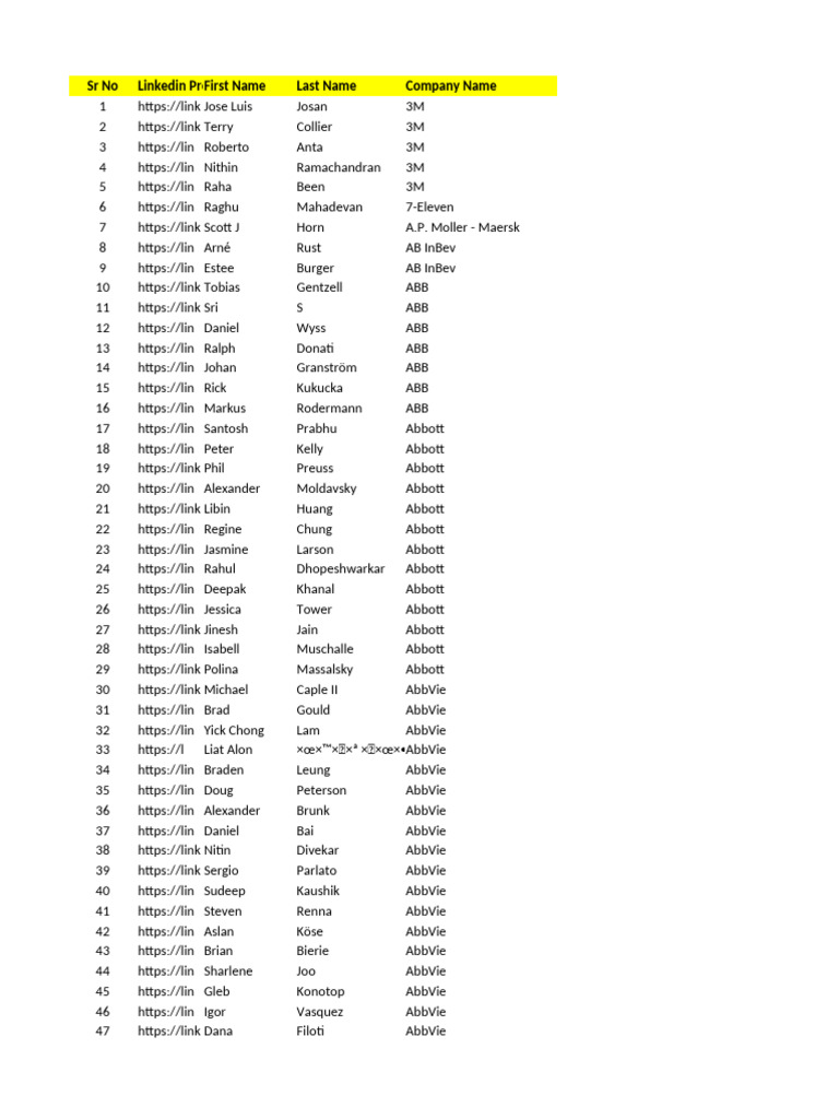 Sr No Linkedin ProFirst Name Last Name Company Name