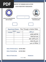 3) Experimentally measure flow characteristics of a Venturi meter