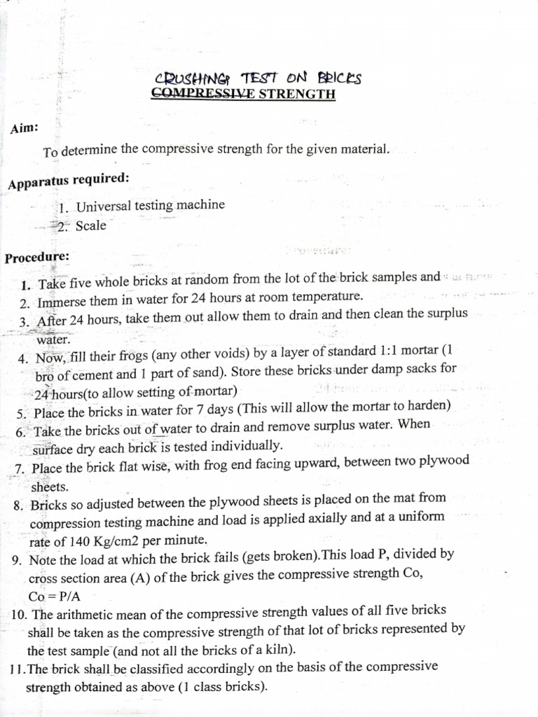 |. Note the load at which the brick fails (gets broken).This load P, divided by