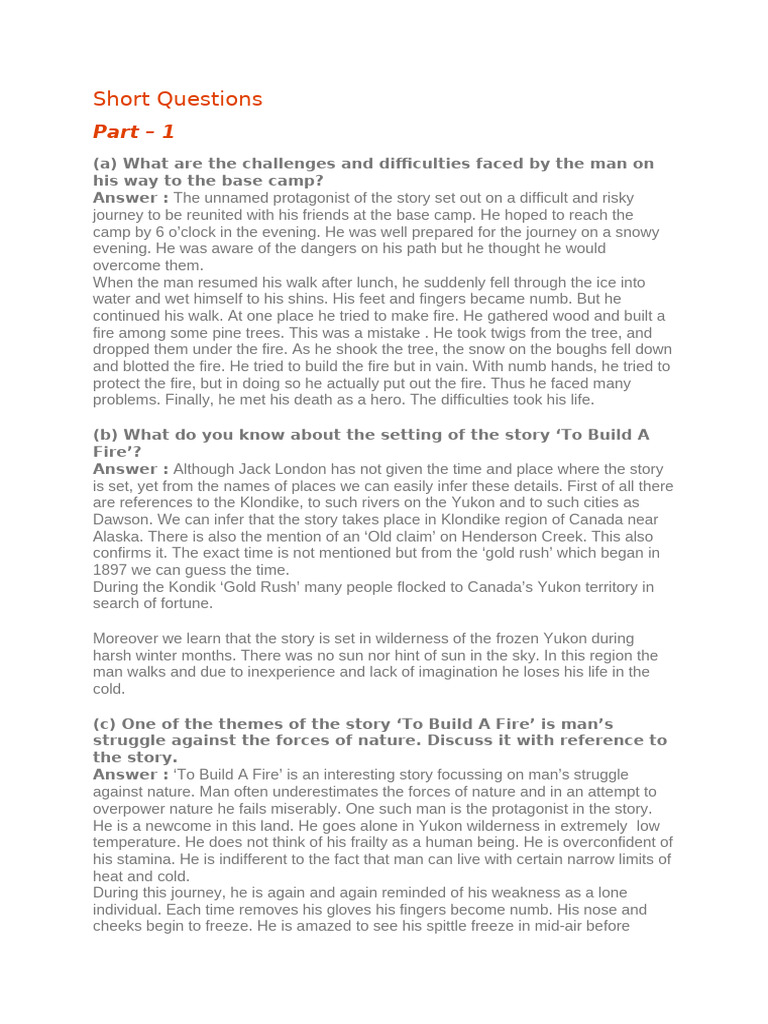 Answer : ‘To Build A Fire’ is an interesting story focussing on man’s struggle