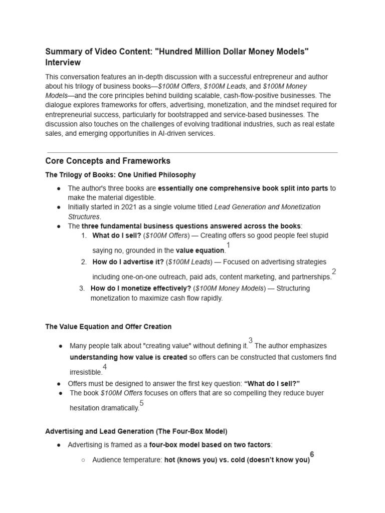 Summary of Video Content: "Hundred Million Dollar Money Models"