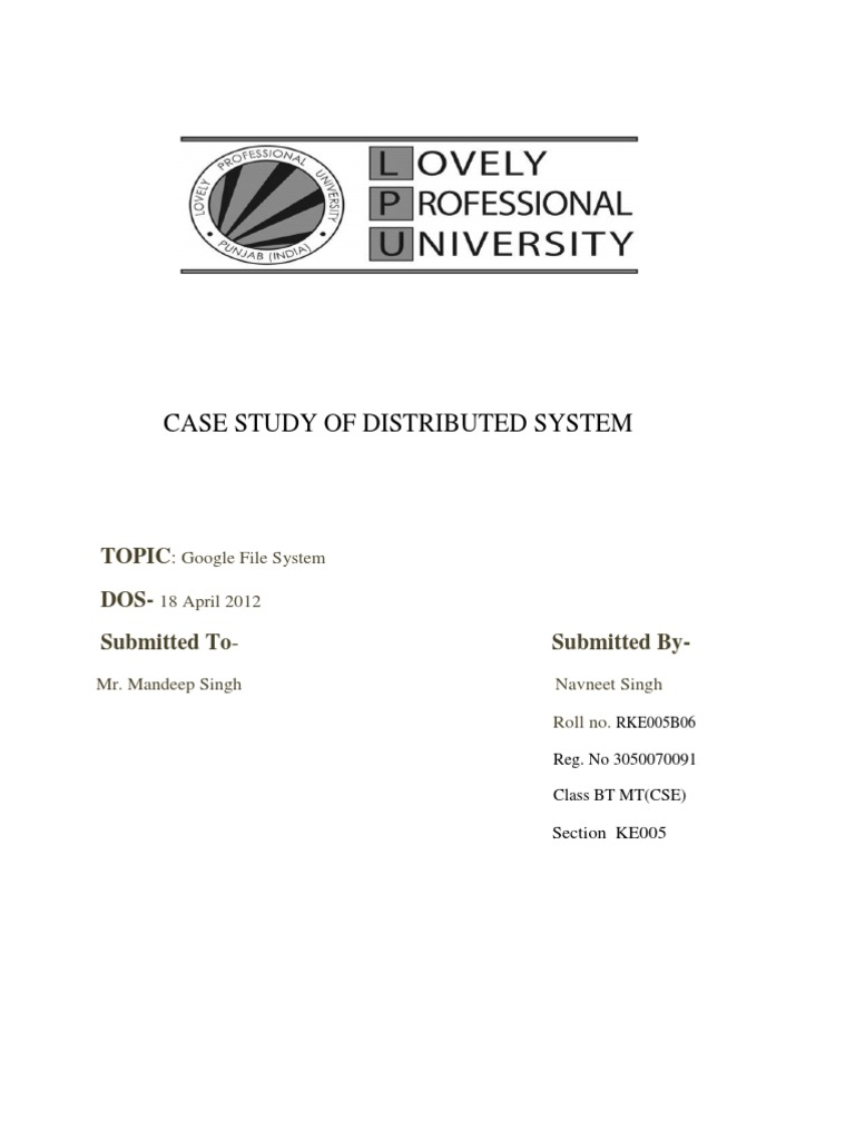 CASE STUDY OF DISTRIBUTED SYSTEM
