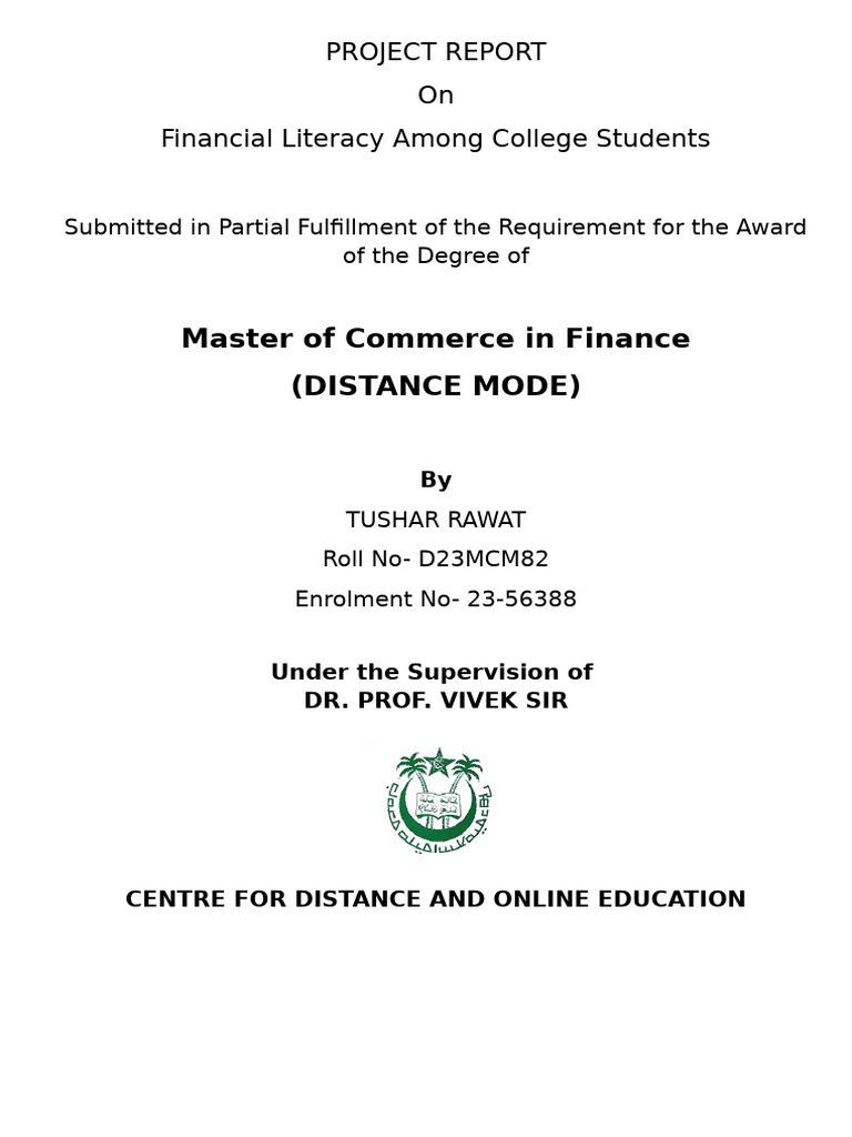 This research project, titled “Financial Literacy Among College Students in