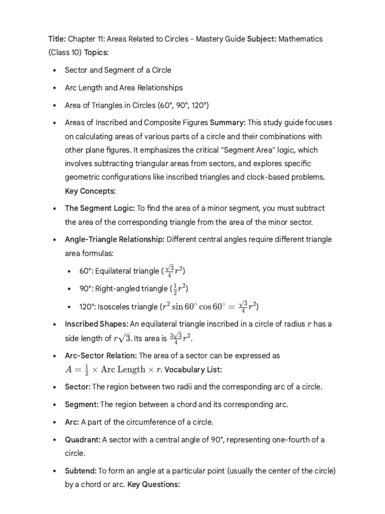 Title: Chapter 11: Areas Related to Circles - Mastery Guide Subject: Mathematics
