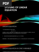 Linear Equation in One 3x = 9 Can be solved with one equation only LEOV