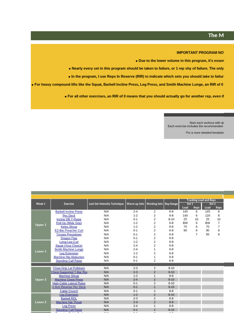 ilure, or 1 rep shy of failure. The only exceptions are in Week 1 (an intro week) and Week 7 (a deload week), where you won't train quite as ha
