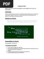 2. TEACHING AND - To undertake effectively the provisions of - Prepare teaching/ learning aids - From week one onwards teaching/