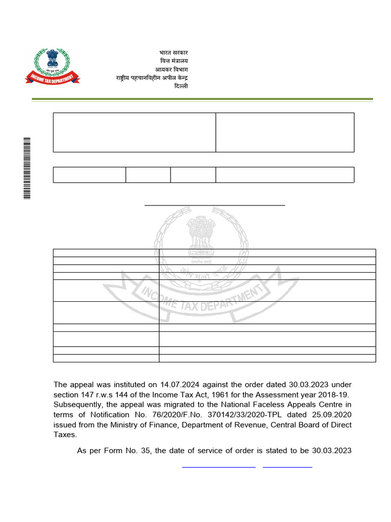 Subsequently, the appeal was migrated to the National Faceless Appeals Centre in