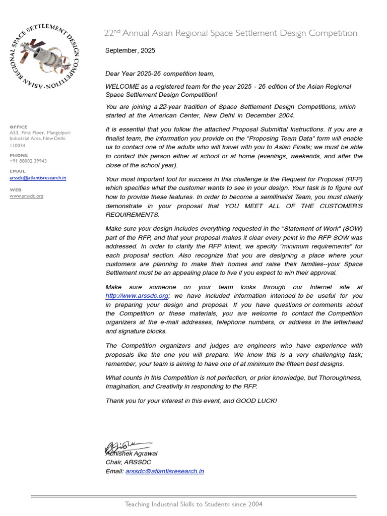 arssdc@atlantisresearch.in Your most important tool for success in this challenge is the Request for Proposal (RFP)