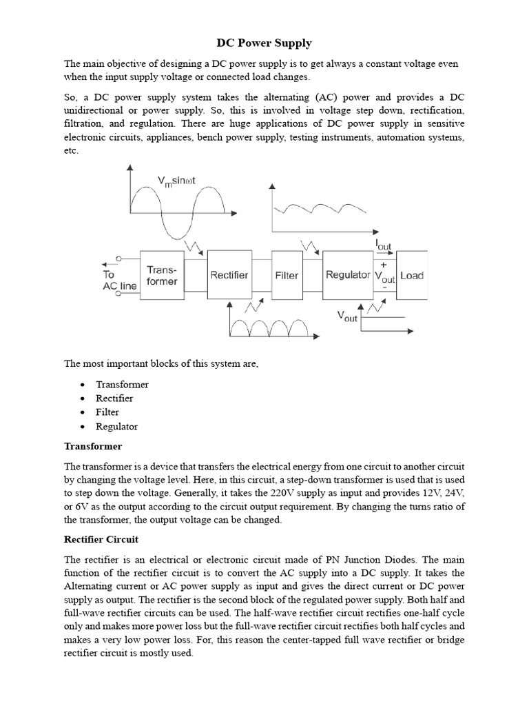 So, a DC power supply system takes the alternating (AC) power and provides a DC