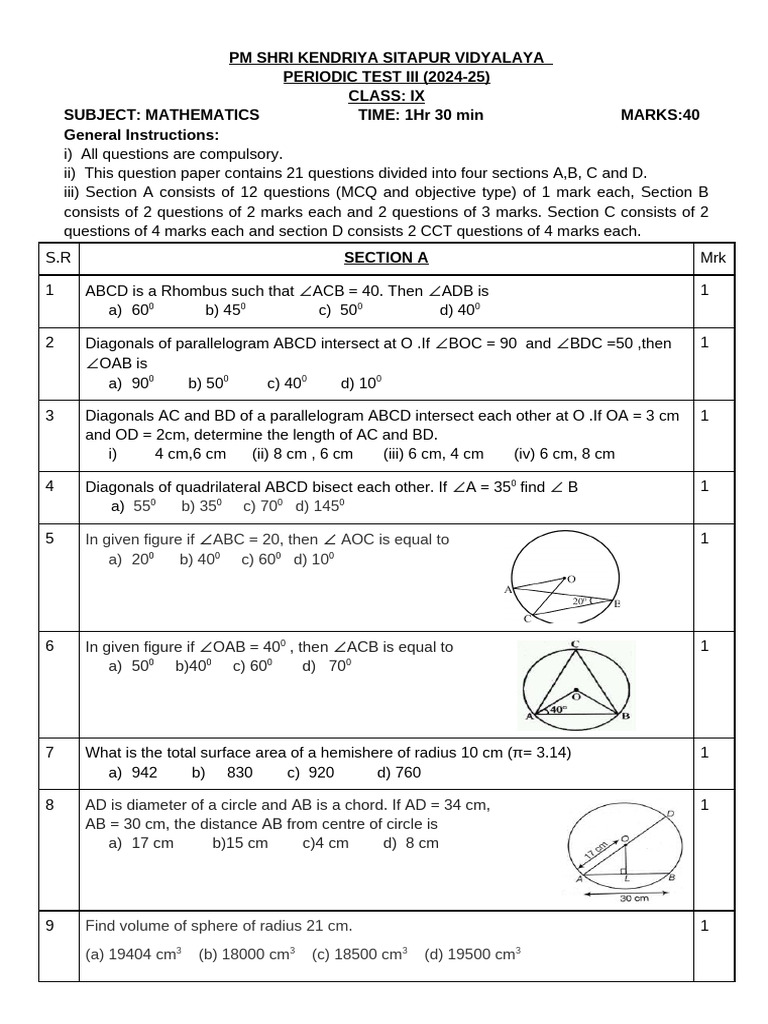 SUBJECT: MATHEMATICS TIME: 1Hr 30 min MARKS:40