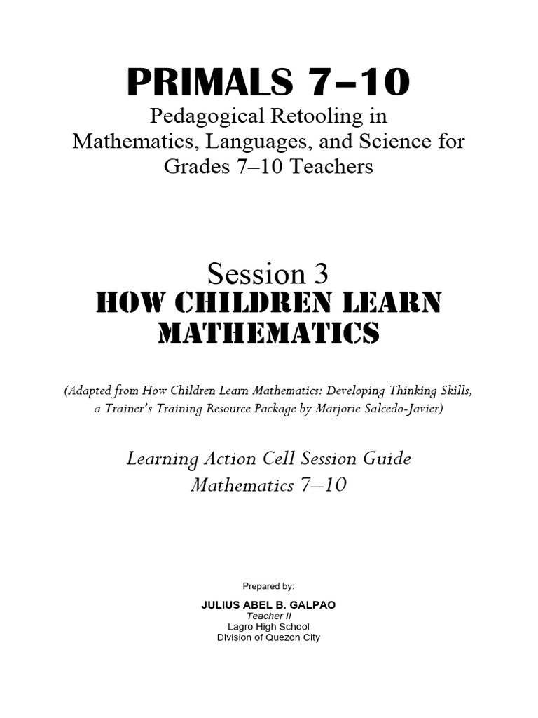 Children Learn Mathematics.” Before we start, let us take note of the following