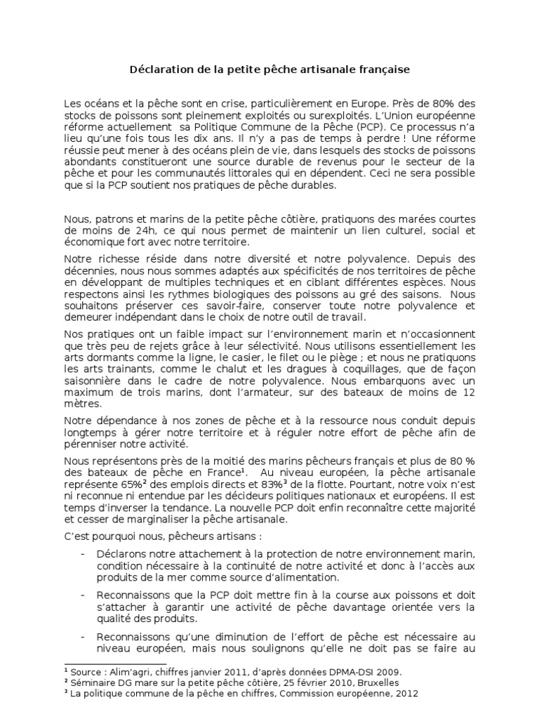 Ce Mercredi 27 juin, Frédéric Reste, Président du Syndicat des petits métiers du Languedoc-Roussillon, Anne-Marie Vergez Patron pêcheur du Nahikari, pêche au merlu de ligne de St Jean de Luz et Gwen Pennarun Président de l'association des ligneurs de la Pointe de Bretagne, se sont réunis à Paris, pour la signature d'une Déclaration de la petite pêche artisanale française.